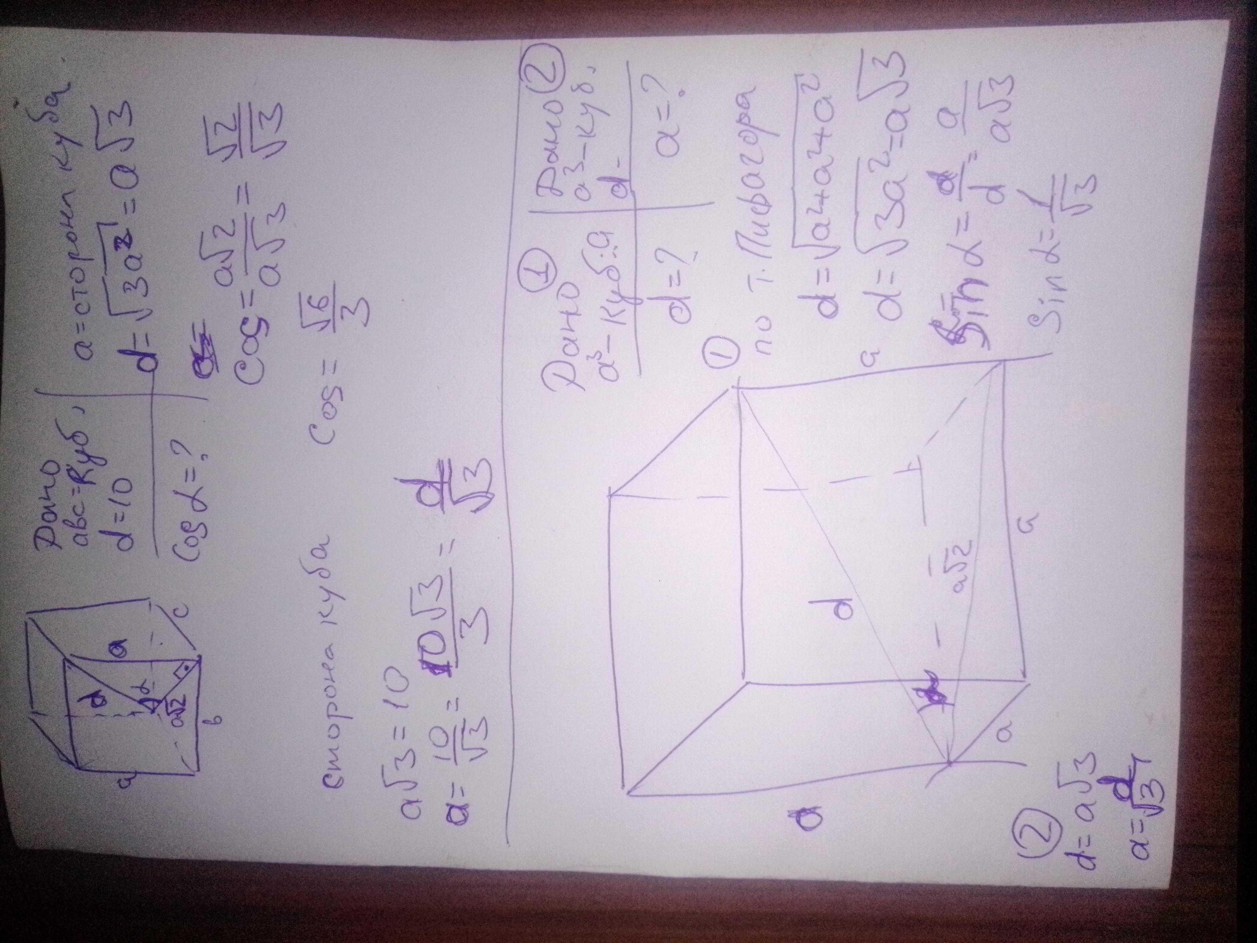 Ребро куба = а. Найдите диагональ куба.