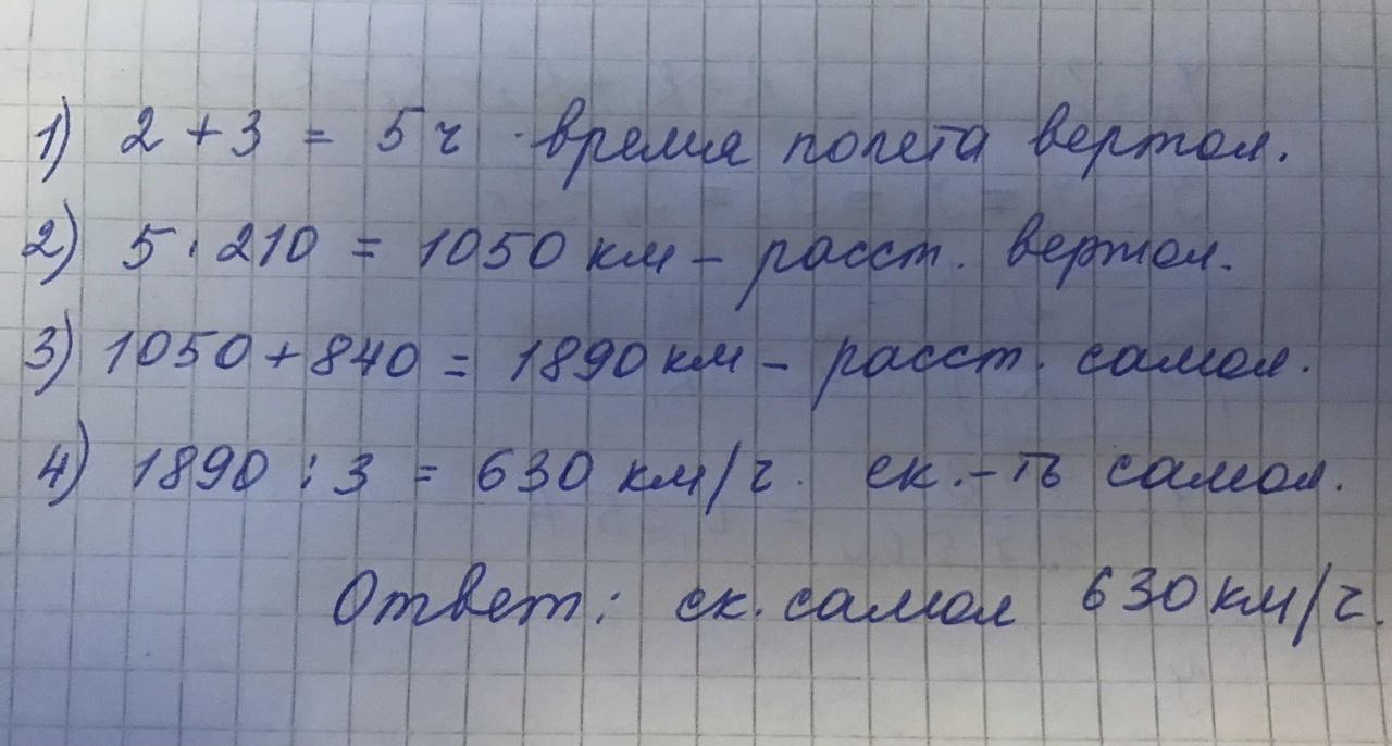 3 ч после своего вылета перегнал вертолёт на 840 км. Найдите скорость