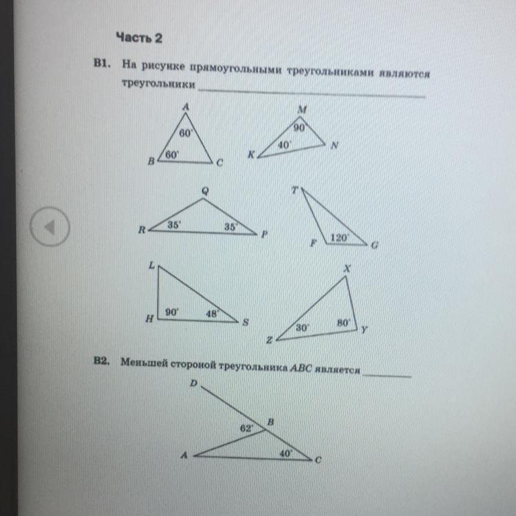 В1: АВС, так как у прямоугольного треугольника углы ровные
