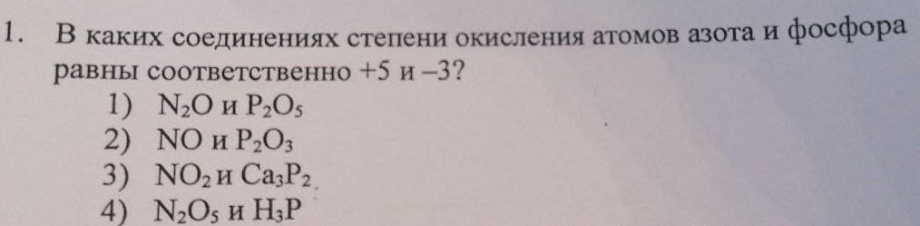 Проанализировав все соединения, выбираем правильный ответ на условие задачи, это соответствует 4) N₂⁺⁵O₅⁻² i H₃⁺¹P⁻³