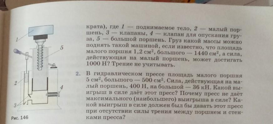 1. На рисунке 146 изображена упрощённая схема гидравлического подъёмника ( гидравлического дом-...