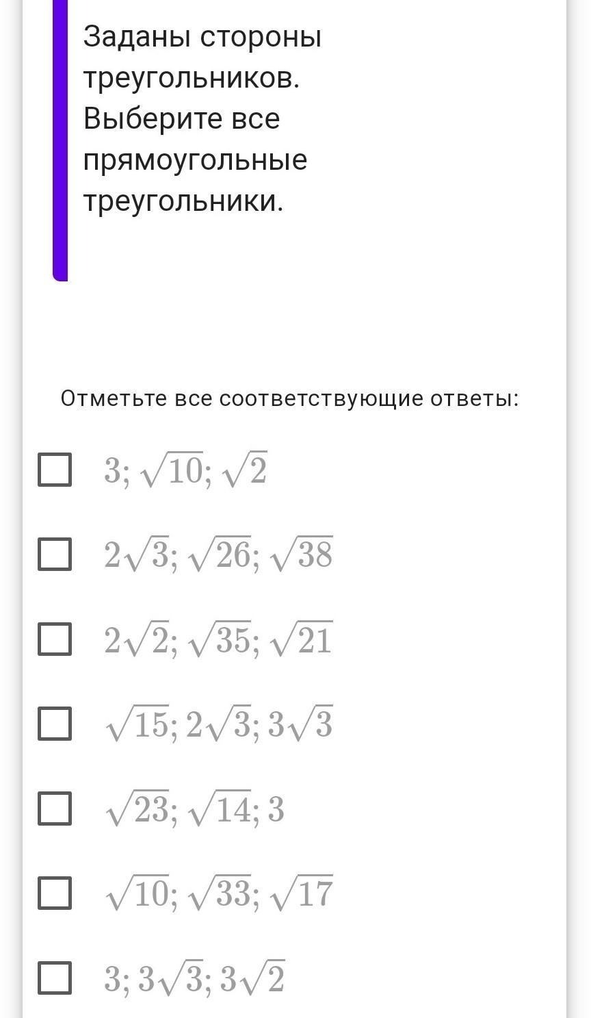 √8; √35; √21 (√35)²=(√8)²+(√21)²