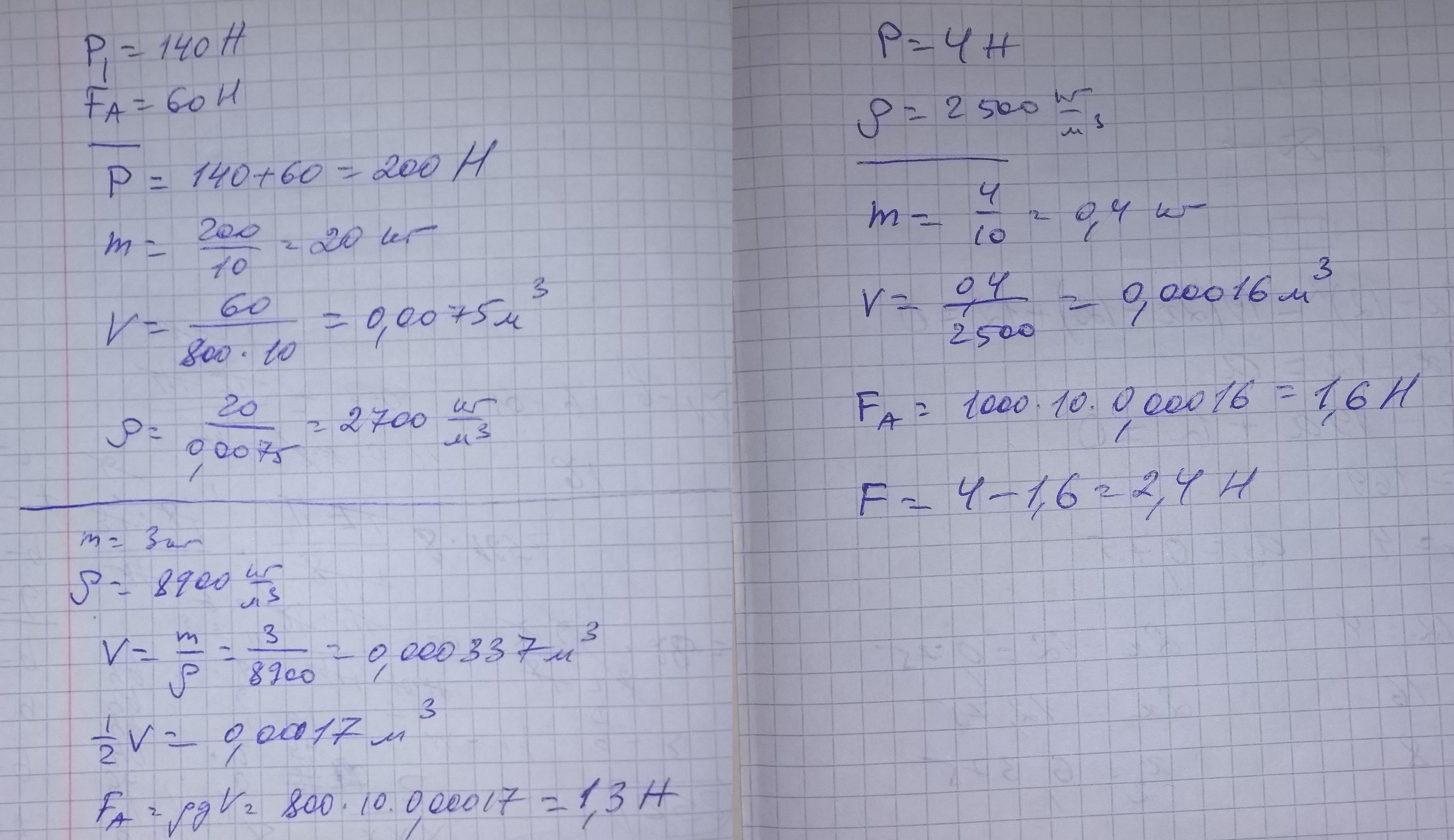Вес тела в керосине 140 Н. А его выталкивающая сила равна 60 Н. Какова объем, масса и плотность тела?