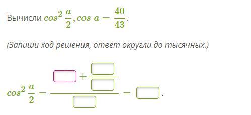 1) cos²α/2=(1+cosα)/2=(1+40/43)/2= 0.97