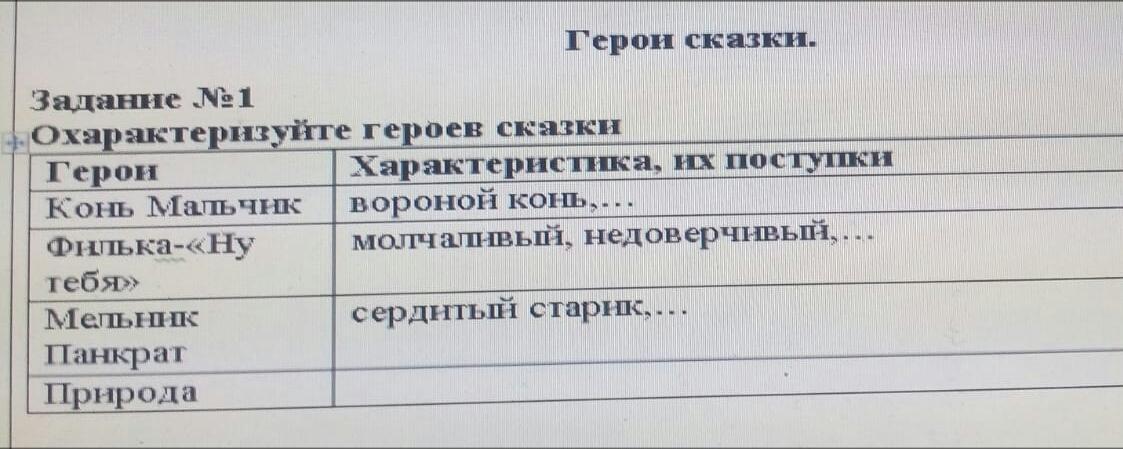 Филька- Главный герой «Теплого хлеба» – мальчик Филька, из-за которого и случилось в деревне несчастье. Характеристика героя Фильки не отличается положительными чертами, герой этот не очень хороший мальчик. Злой, жадный, угрюмый, относится ко всем настороженно и недоверчиво. Грубит не только своим сверстникам, но и бабушке, которая растит неласкового внука. Один раз Филька обидел коня, которого подкармливала вся деревня. Сначала он пожалел ему кусок хлеба, а после, бросил хлеб в снег. Началась метель, бабушка объяснила, что это злоба людская, и надо исправлять положение. Филька все понял, и попросил у лошади прощения