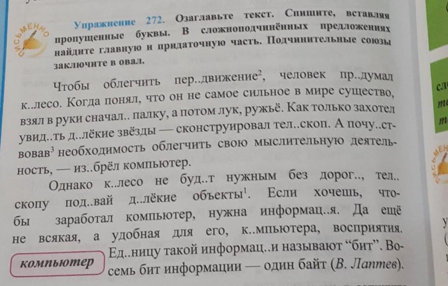 Озаглавьте текст. Спишите, вставляя пропущенные буквы. В сложноподчинённых предложениях Найдите главную и придаточную часть подчинительные союзы заключите в овал.