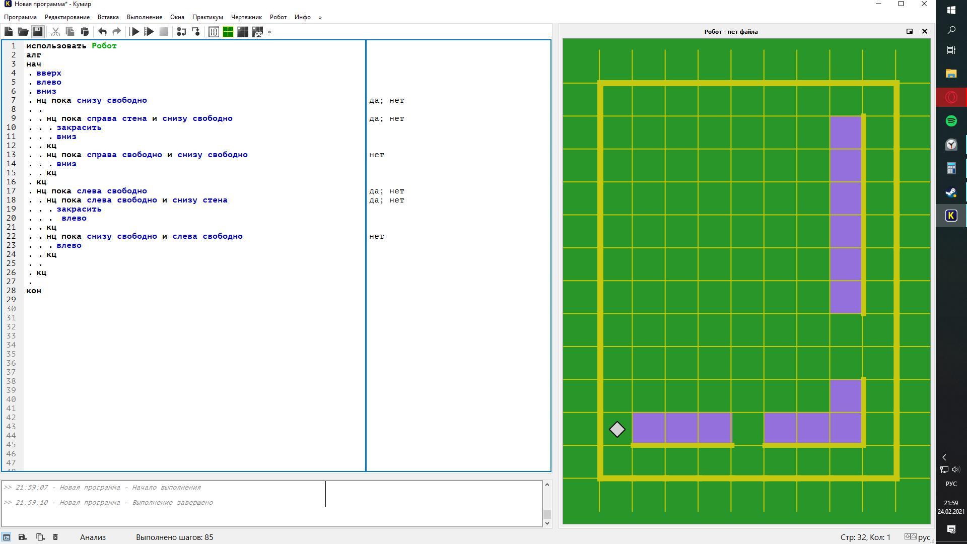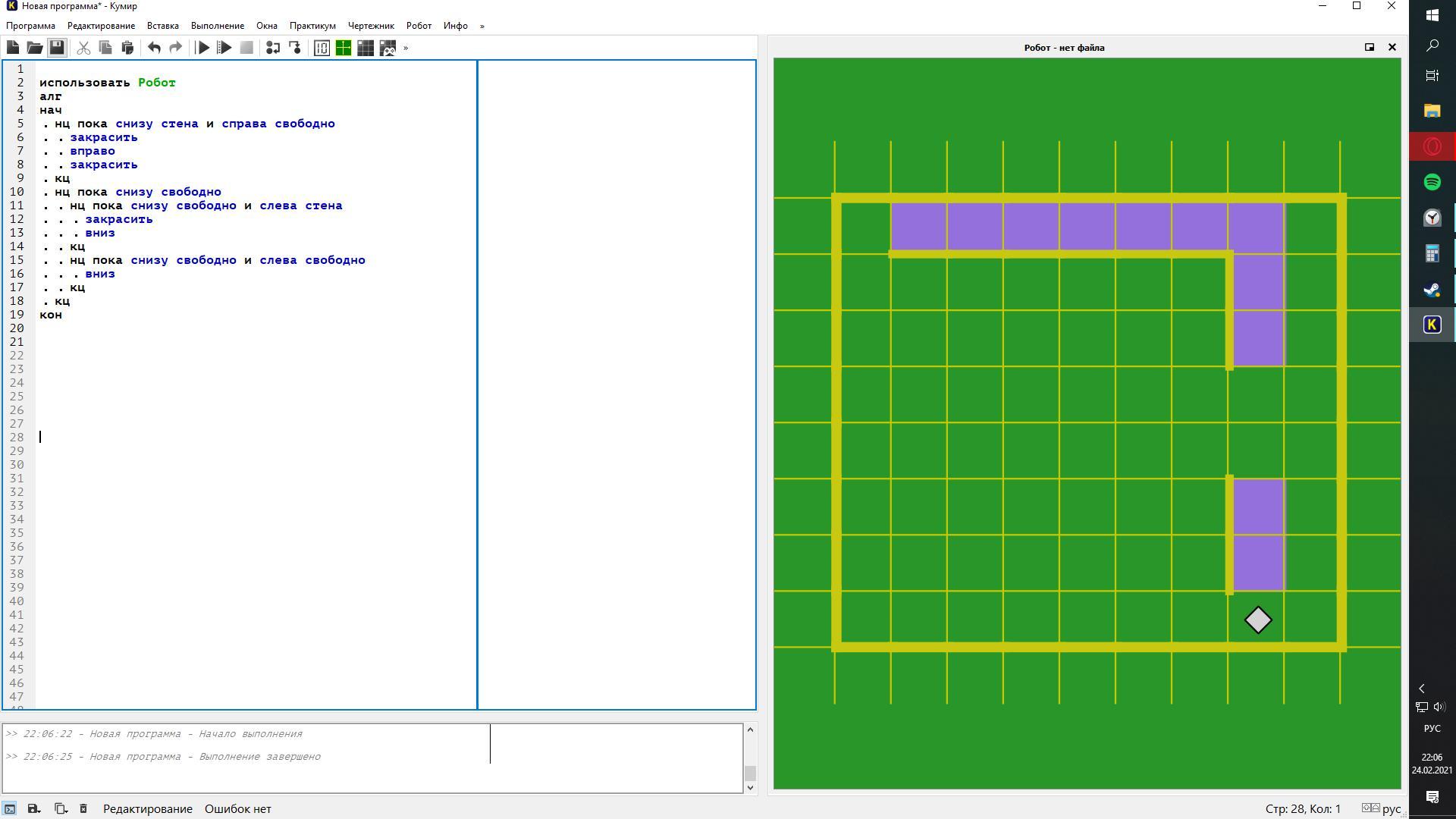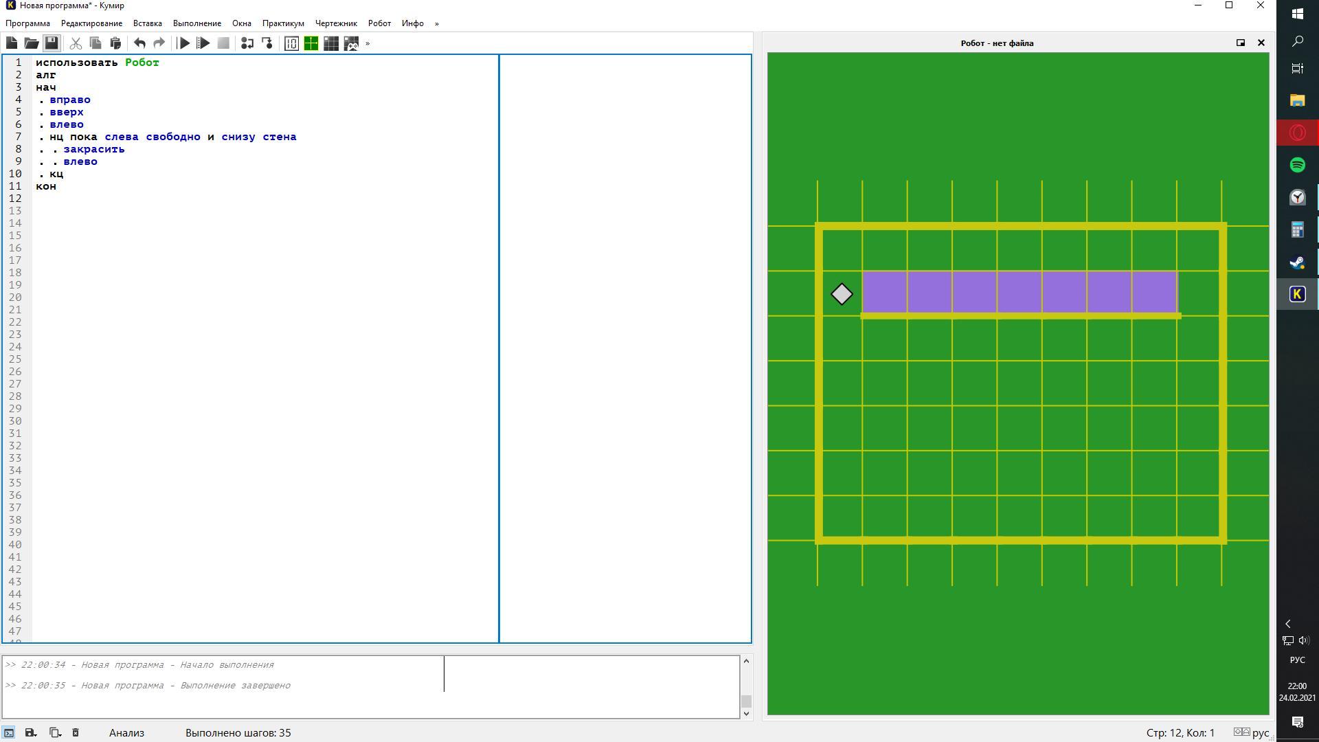 Построить Робота в программе Кумир (3робота)