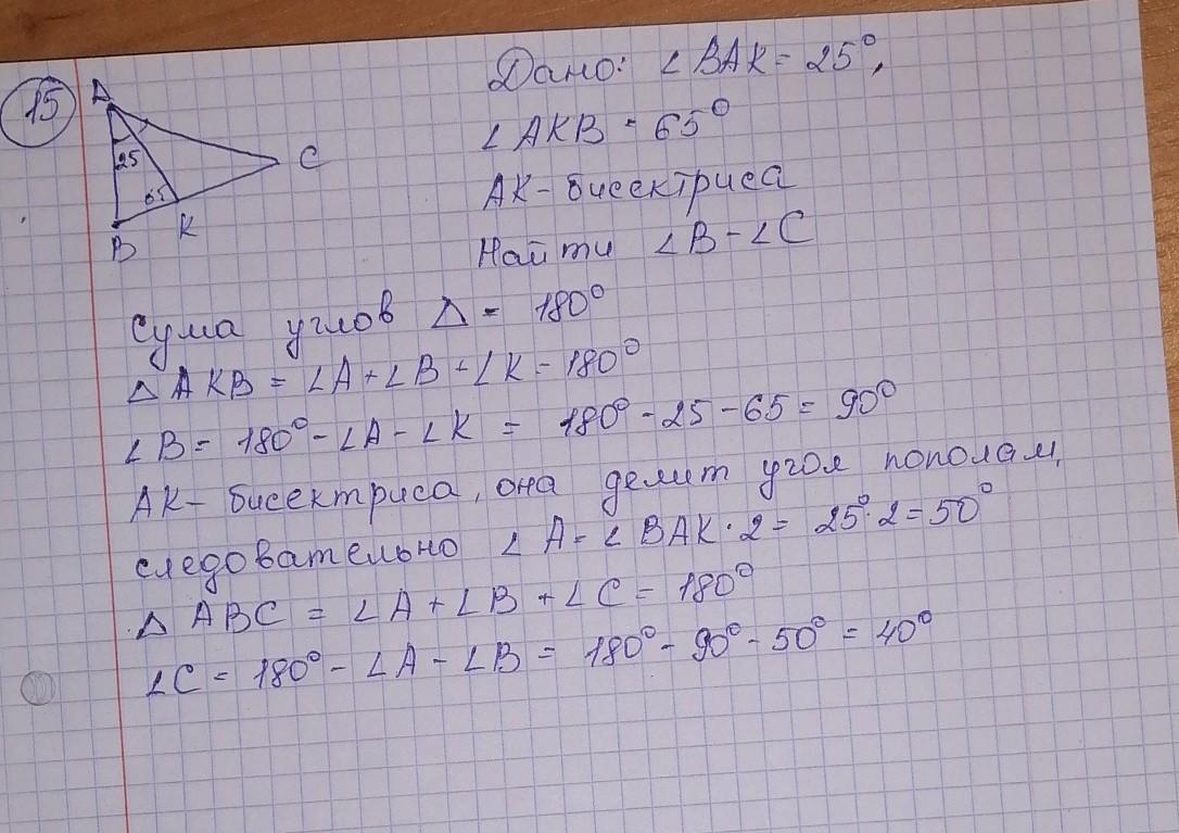 15) угол В =90, угол С =40