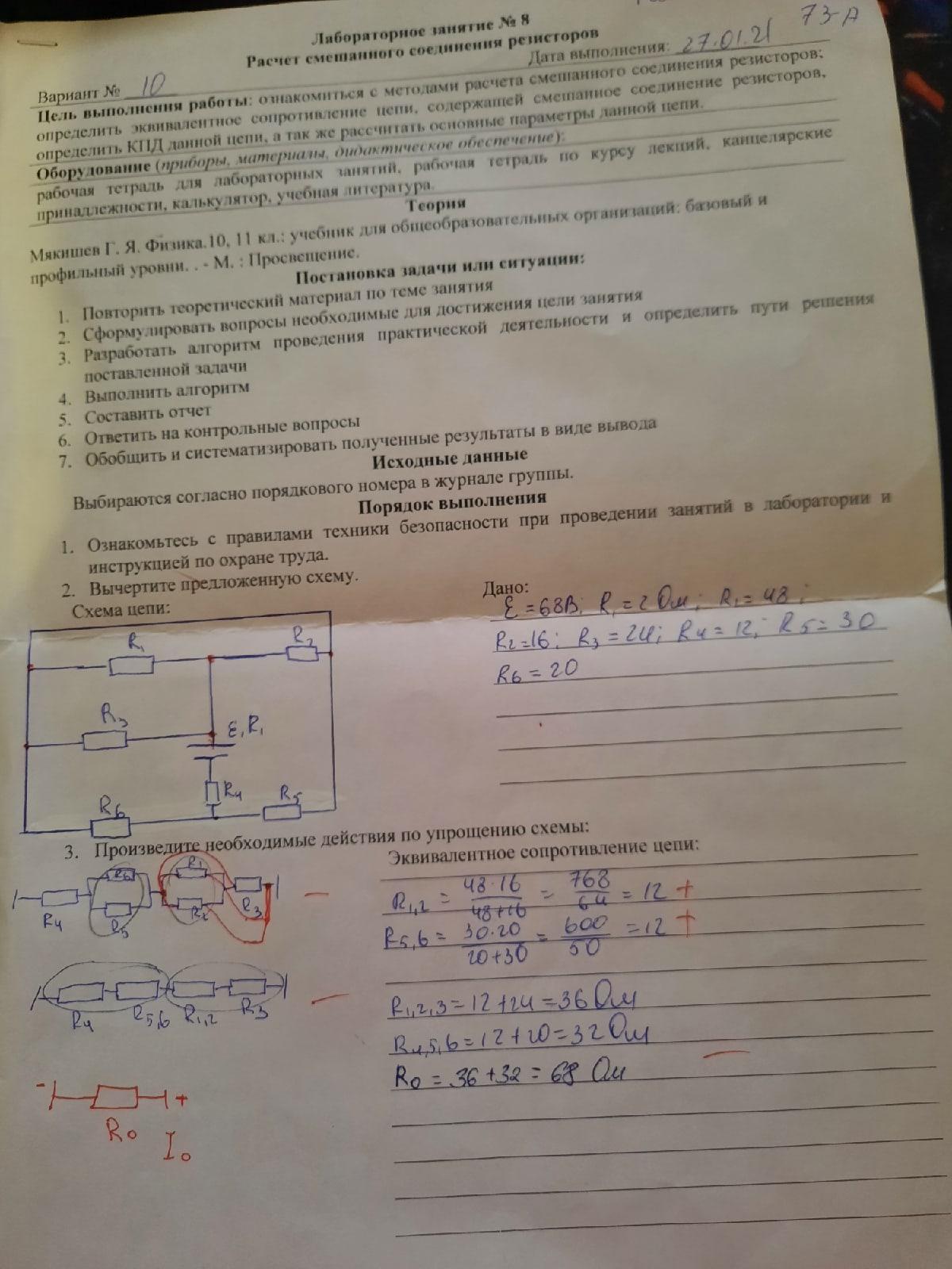 Rэ=R₁-₃+R₄+R₅,₆+r₀=8+12+12+2=34 Ом.