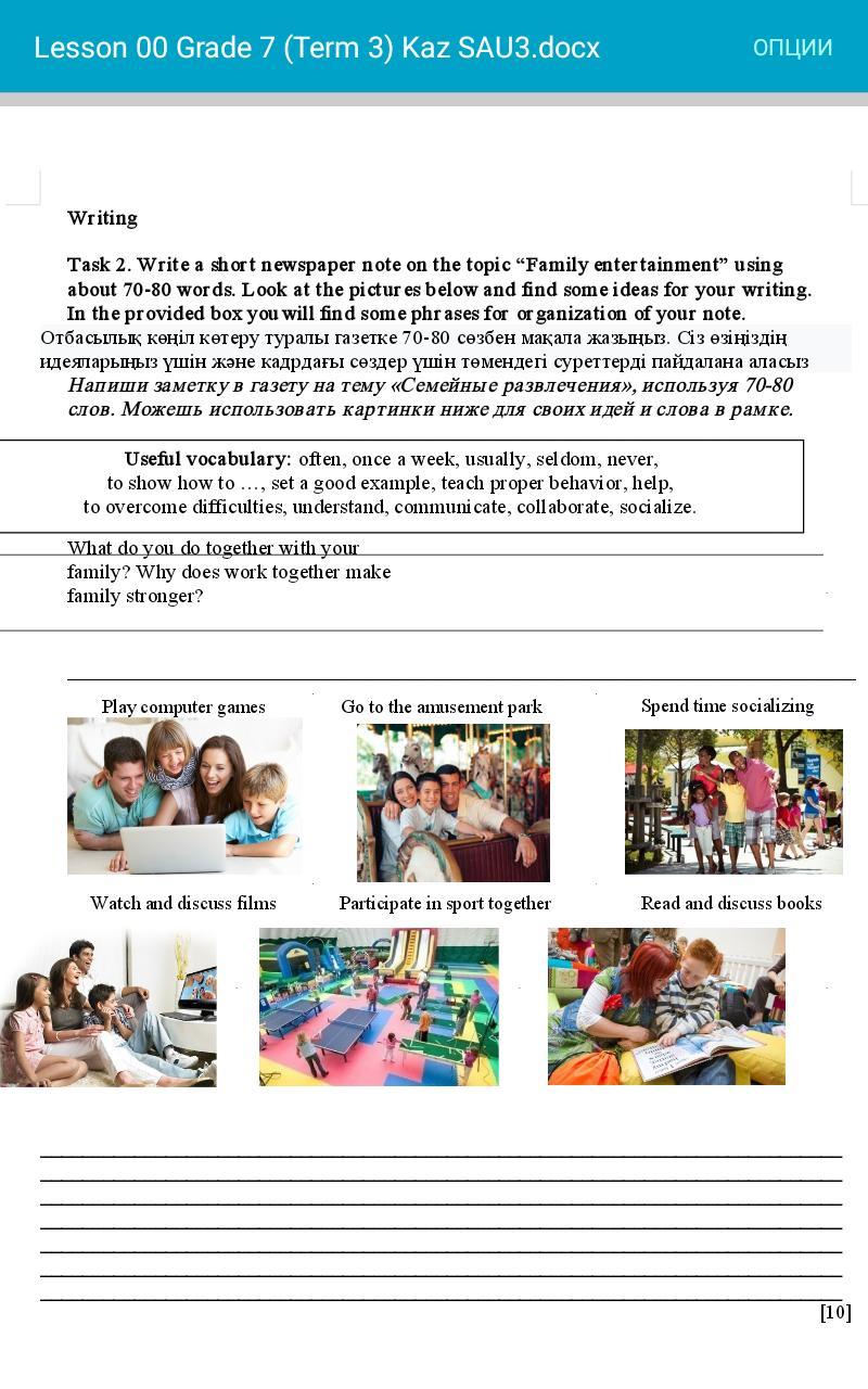 Напиши заметку в газету на тему «Семейные развлечения», используя 70-80 слов. Можешь использовать картинки ниже для своих идей и слова в рамке.