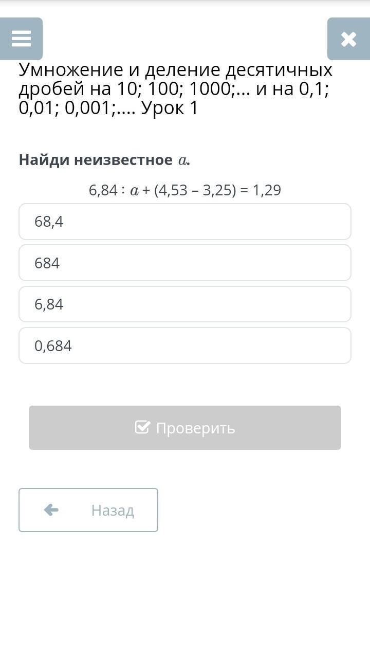 Умножение и деление десятичных дробей на 10; 100; 1000;... и на 0,1; 0,01; 0,001;.... Урок 1 найди неизвестное a. 68,4