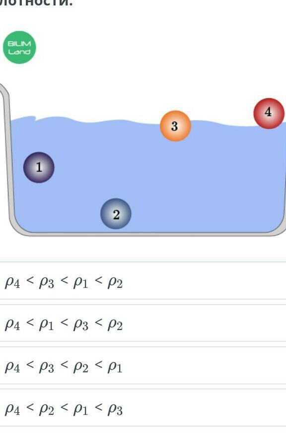 Расположи шарики, изображенные на рисунке, в порядке увеличения плотности.