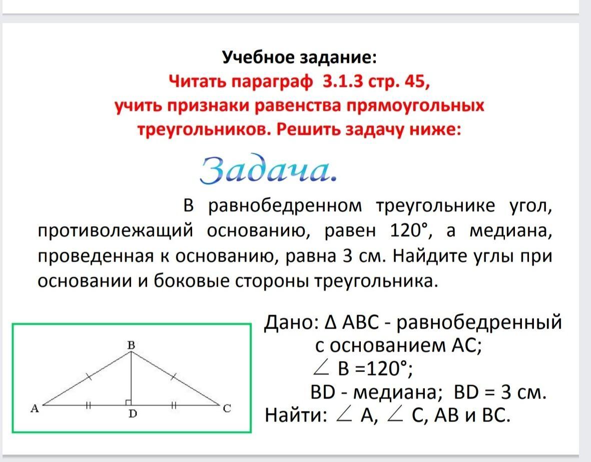 Отсюда следует, что ВС=2ВД=2*3=6см