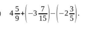 4 \frac{5}{9}  + ( - 3 \frac{7}{15}) - ( - 2\frac{3}{5}  ) =  \frac{41}{9}  -  \frac{52}{15} +  \frac{13}{5}  \\  \frac{166}{45}  = 3 \frac{31}{45}