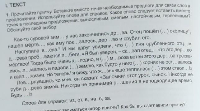 1. Прочитайте притчу. Вставьте вместо точек необходимые предлоги для связи слов в