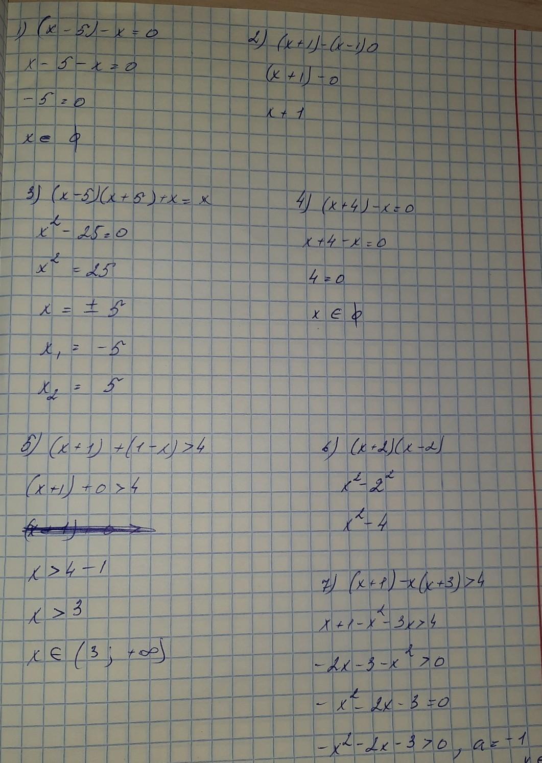7) (x+1)-x (x+3) >4