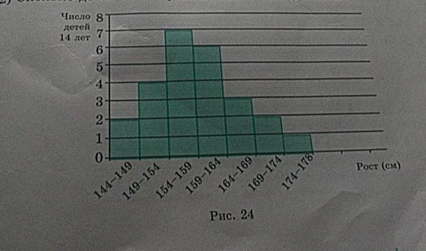 Ответ:6 детей рост имеют не менее, и нее более 164 см
