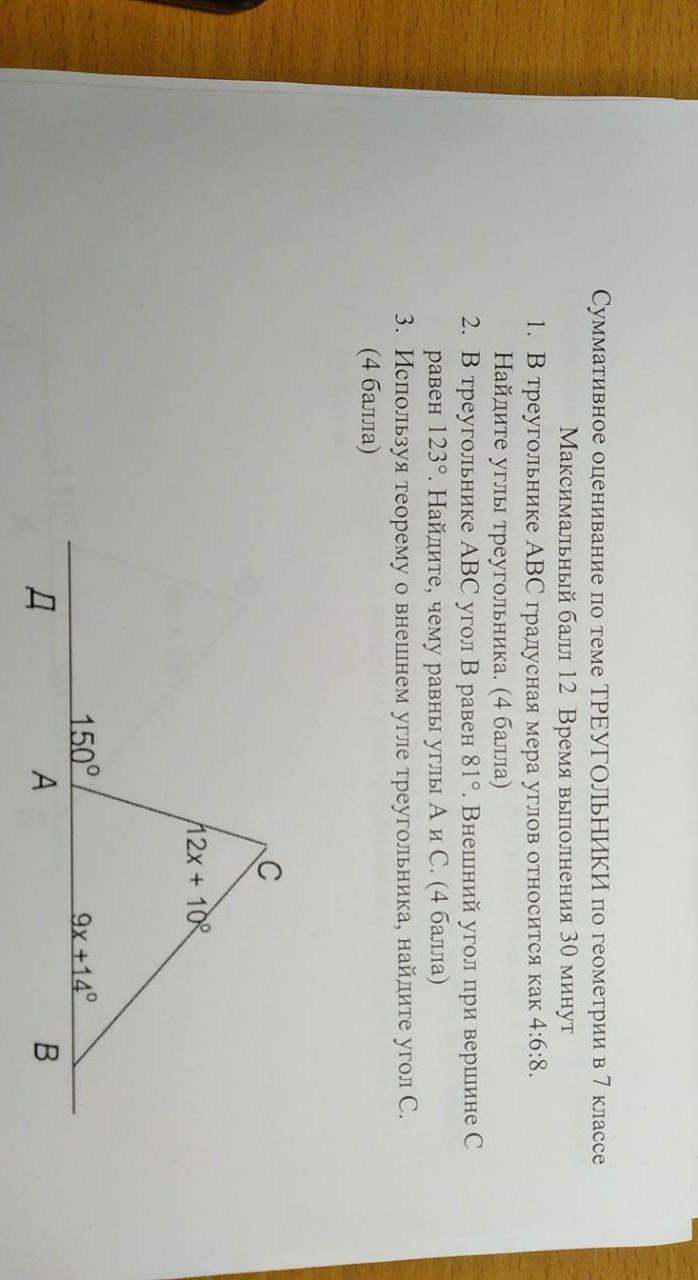 C = 8x, а т.к. сумма градусов углов треугольника равна 180°, то имеем уравнение: