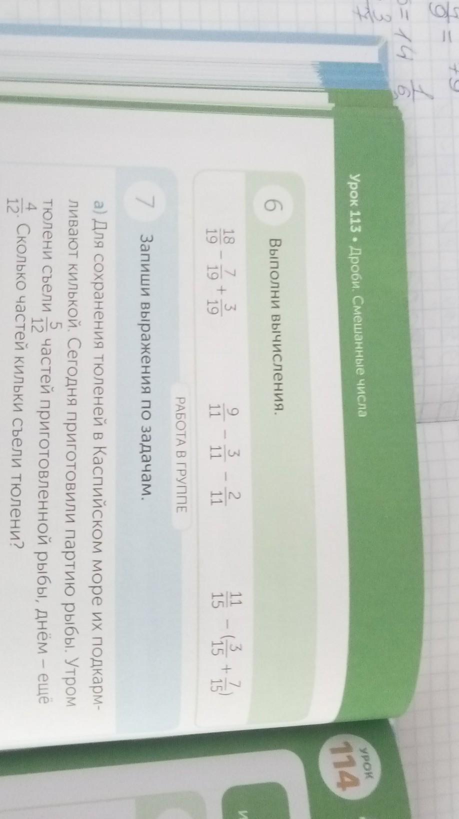 Выполни вычисления 18 19 - 7 / 19 + 3 / 19 равно 9 / 11 - 311 - 211 равно 11 15 - 3 / 15 + 7 / 15 равно