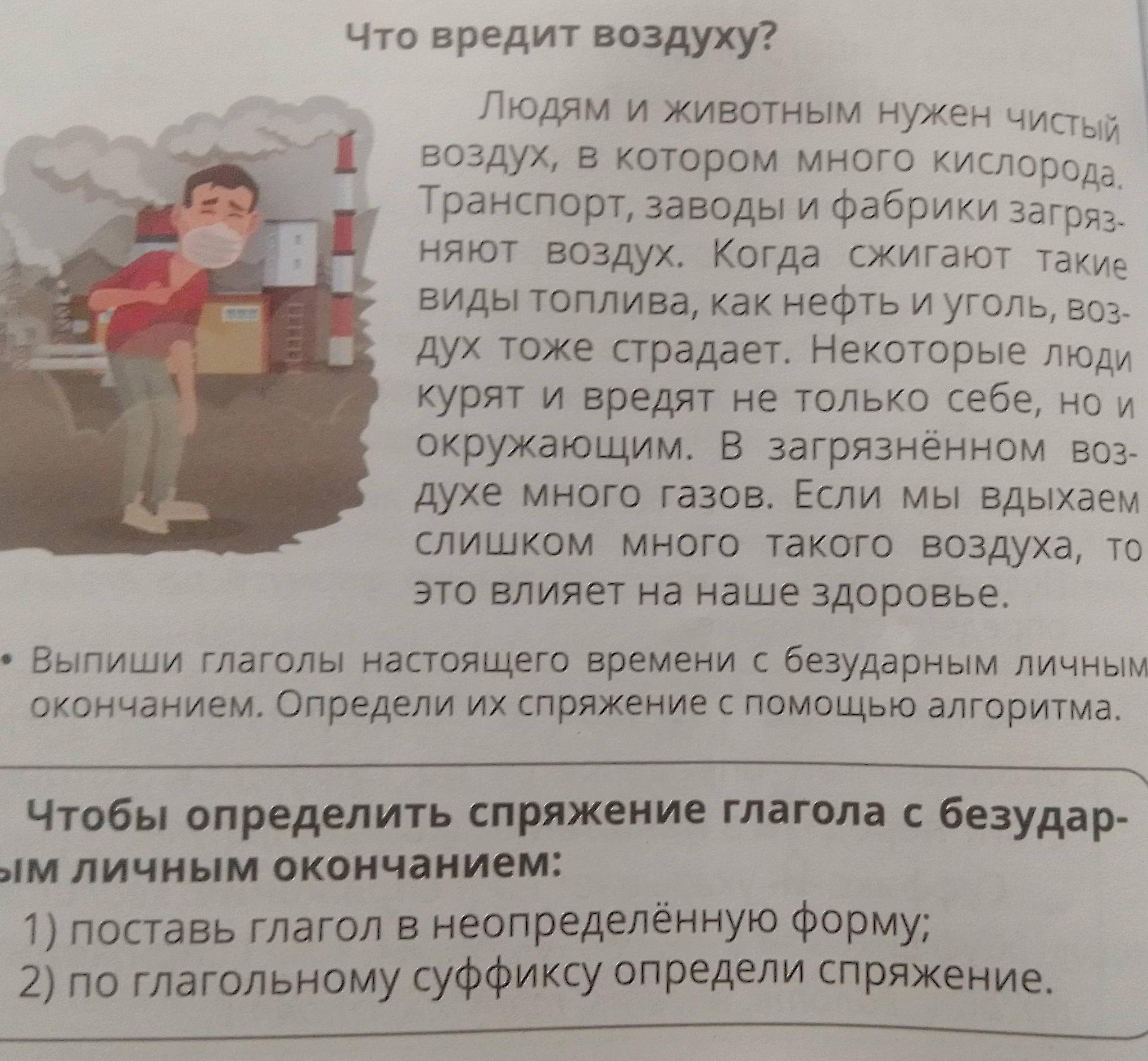 Выпиши глаголы настоящего времени с безударным личным окончанием.Определи их спряжение с помощью алгоритма.