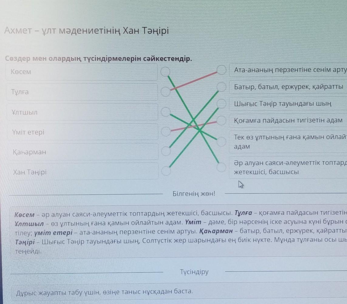 Сөздер мен олардың түсіндірмелерін сәйкестендір.