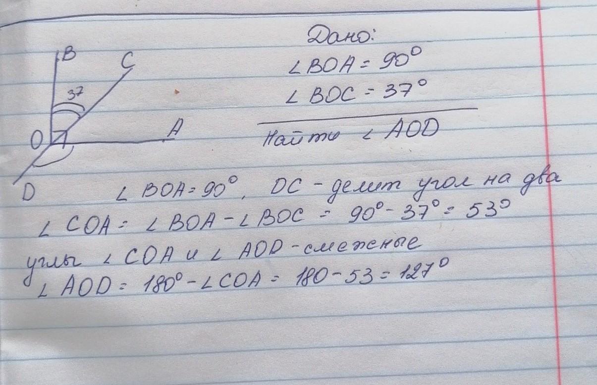 Градусная мера угла AOD = 127