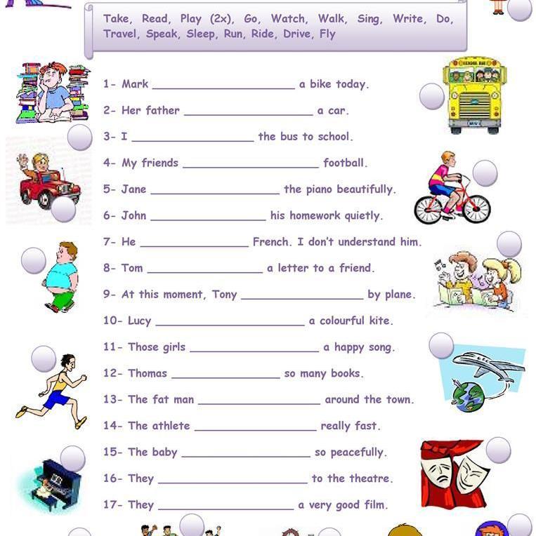 Fill in the sentences with the verb present continuous and math them to the pictures