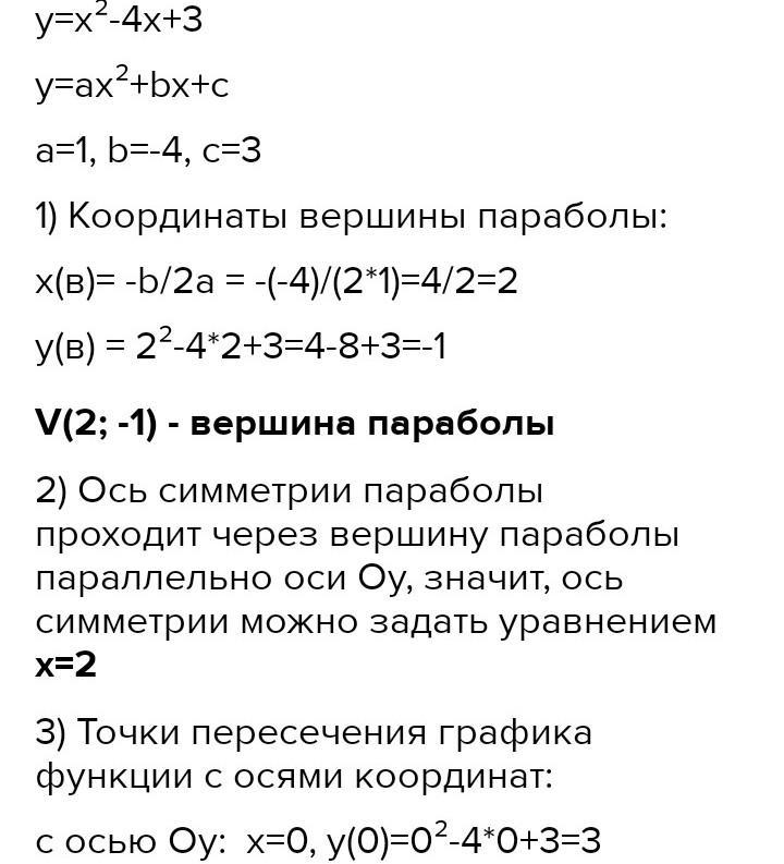 Дана функция: y = –3х2 – х + 21) запишите координаты вершины параболы;2) запишите ось симметрии параболы;3) найдите нули функции (точки пересечения параболы с осью ОХ);4) найдите точку пересечения параболы с осью ОУ и симметричную ей точку относительно оси симметрии параболы;