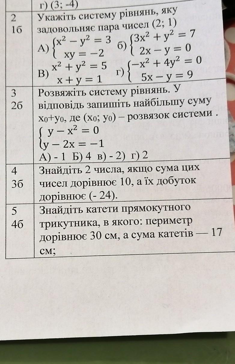 Ответ:3) Г 4) 12 и -2 5) катеты 12 и 5