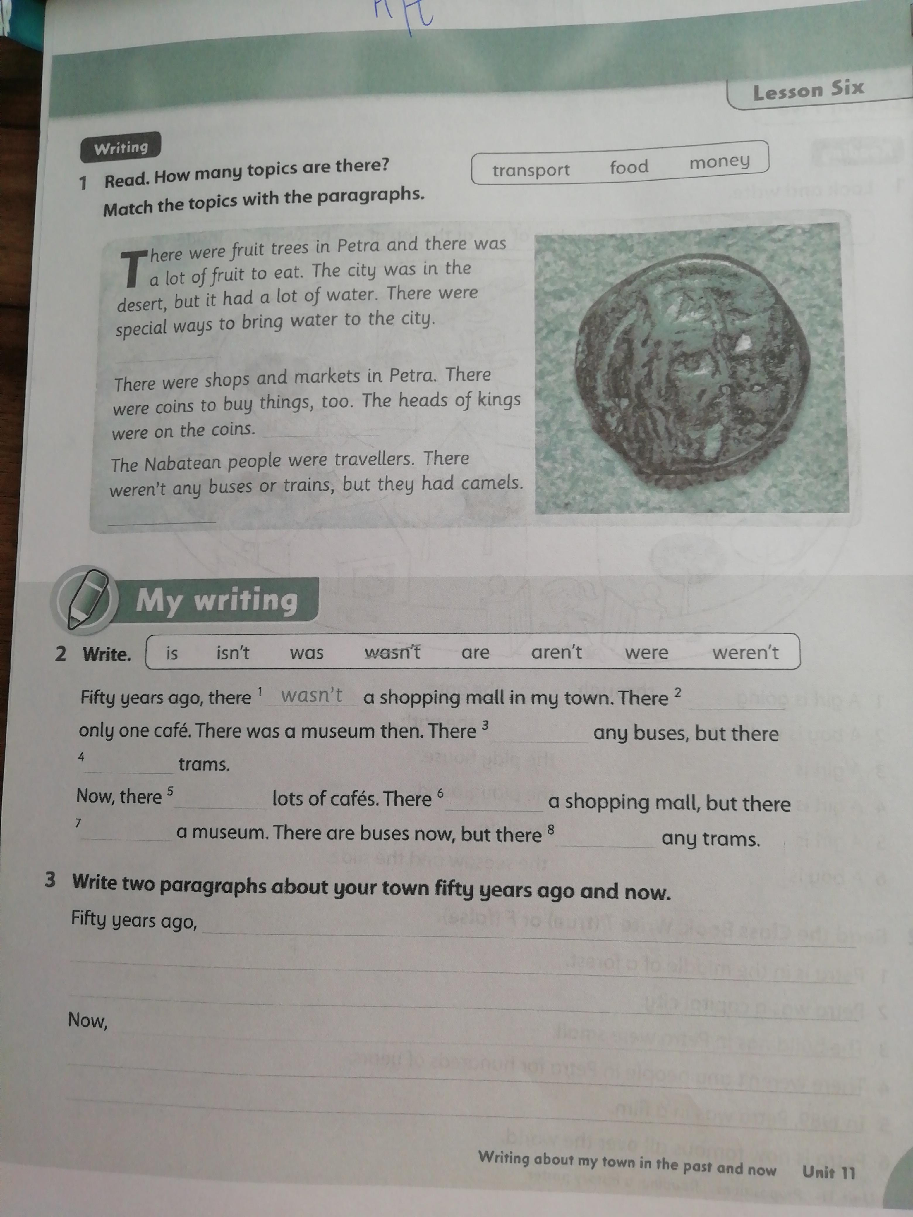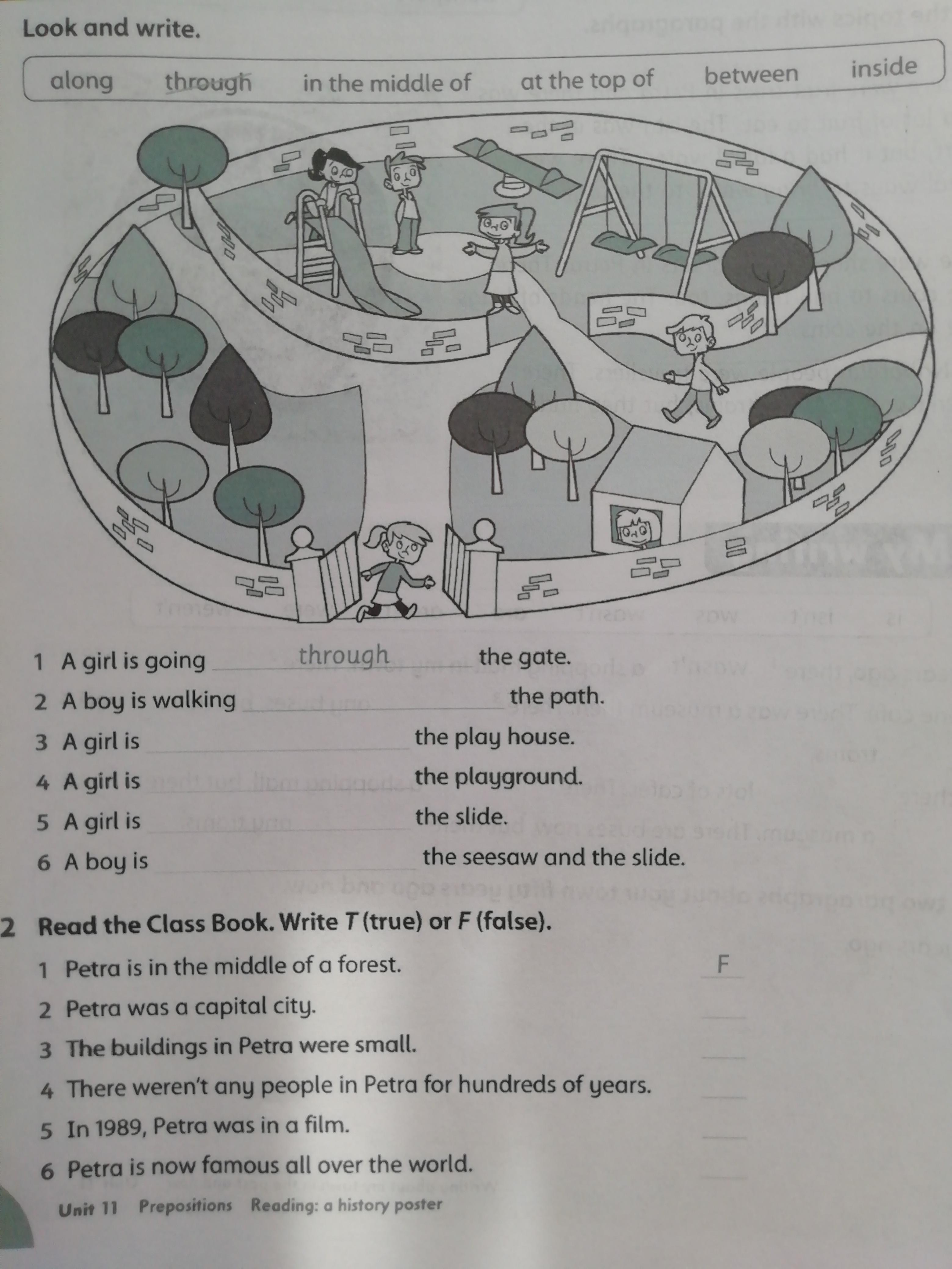 2 Along, 3 inside, 4 in the middle of, 5 at the top, 6 between.