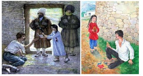 И с тех пор стала она ему каждый день, крадучись, молока носить. А то делают татары из козьего молока лепешки сырные и сушат их на крышах, — так она эти лепешки ему тайком принашивала. А то раз резал хозяин барана, — так она ему кусок баранины принесла в рукаве. Бросит и убежит…