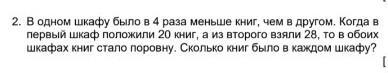 и по условию в обоих шкафах стало книг поровну. что ж, выполним и это условие