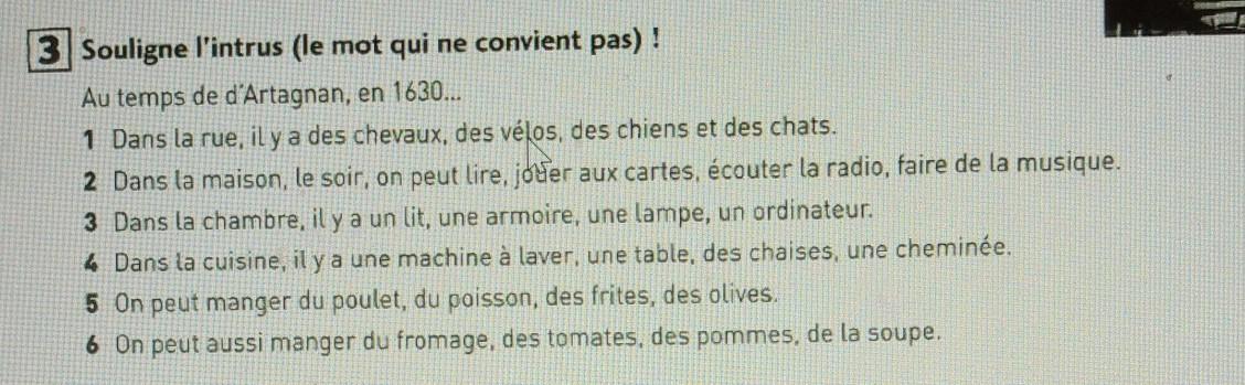3/ Souligne l'intrus (le mot qui ne convient pas) !