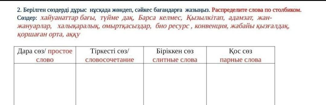 Қос сөз :барса-келмес,қызыл кітап,жан-жануарлар,