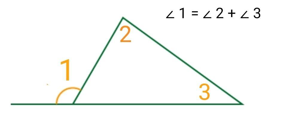 Теорема о внешнем угле треугольника: Внешний угол треугольника равен сумме двух оставшихся углов треугольника, не смежных с этим внешним углом