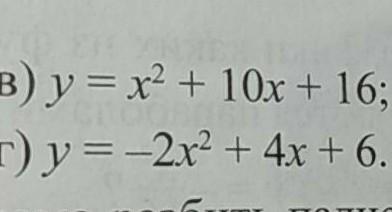 в) y = х ^ 2 + 10x + 16