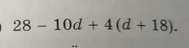 28 - 10d + 4(d + 18) = 28 - 10d + 4*d + 4*18 = 28 - 14d + 72 = 100 - 14d или же можешь вынести 2 за скобки и получить 2(50 - 7х).