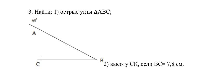 АВС - прямоугольный, ∠А=60°(как вертикальный)