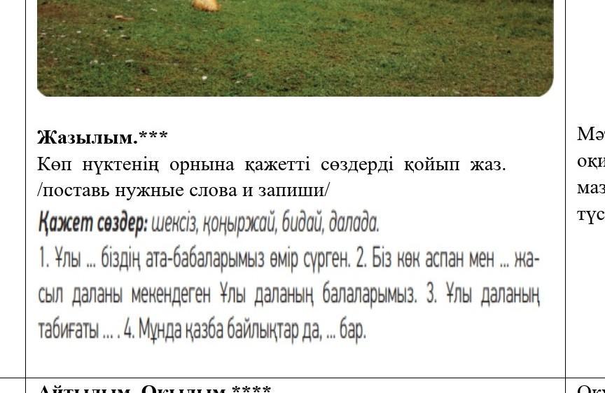Көп нүктенің орнына қажетті сөздерді қойып жаз. /поставь нужные слова и запиши/
