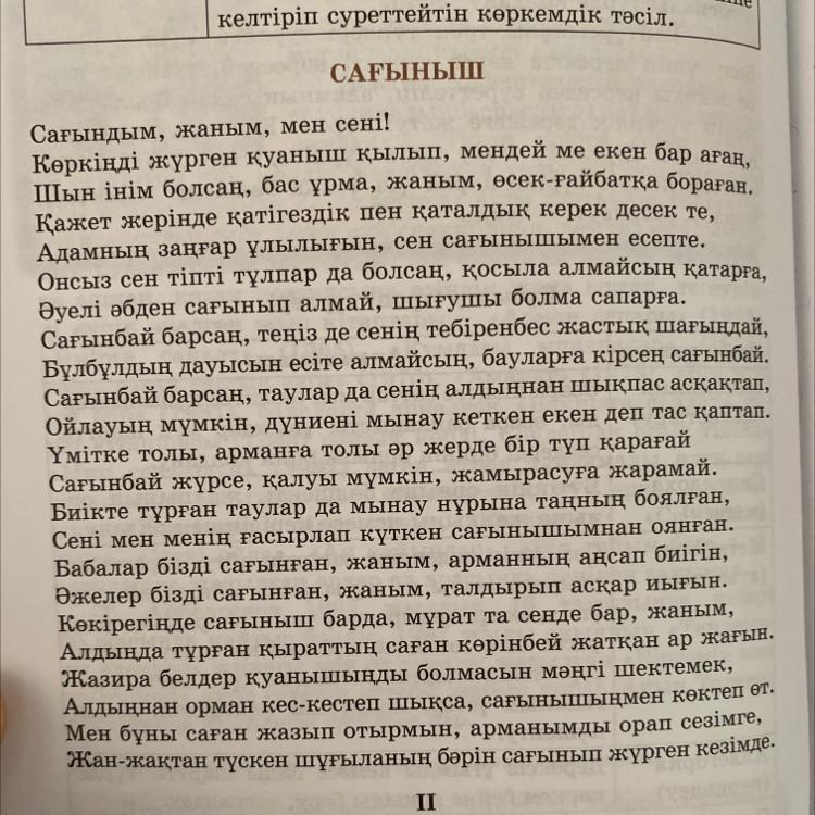 2-тапсырма. Ақын өлеңдегі сағынышты өзің басыңнан