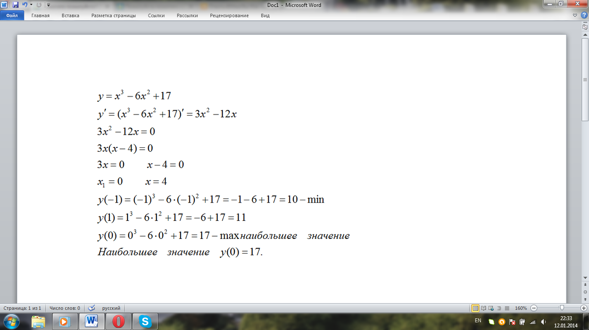 Найти наибольшее значение функции у=x^3-6x^2+17 на отрезке [-1;1]