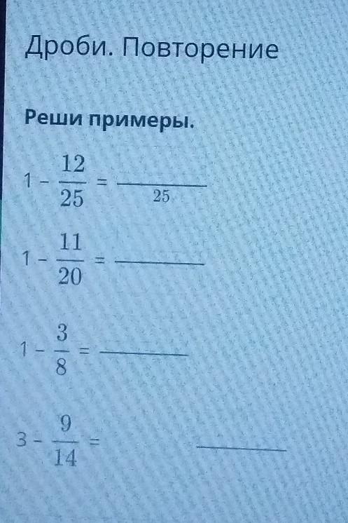1 = как неправильная дробь - полностью дробь в целом, то -есть если дробь равна х/25 - то 1 в этой дроби равен 25/25