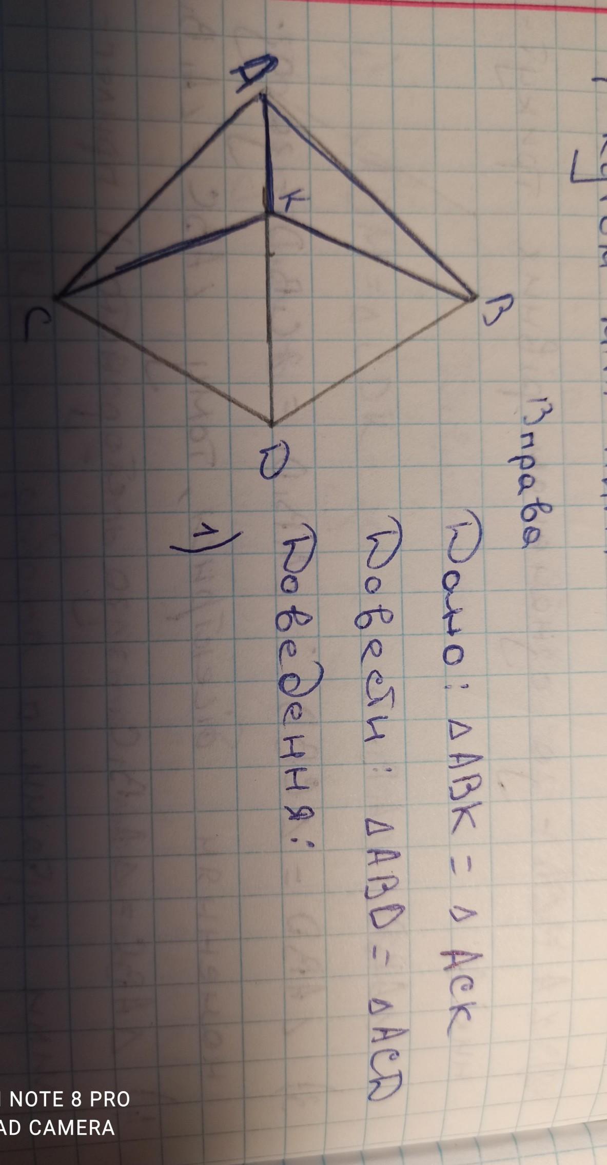 1) т.е. АВК=АСК, то АВ=АС, <ВАК=<САК