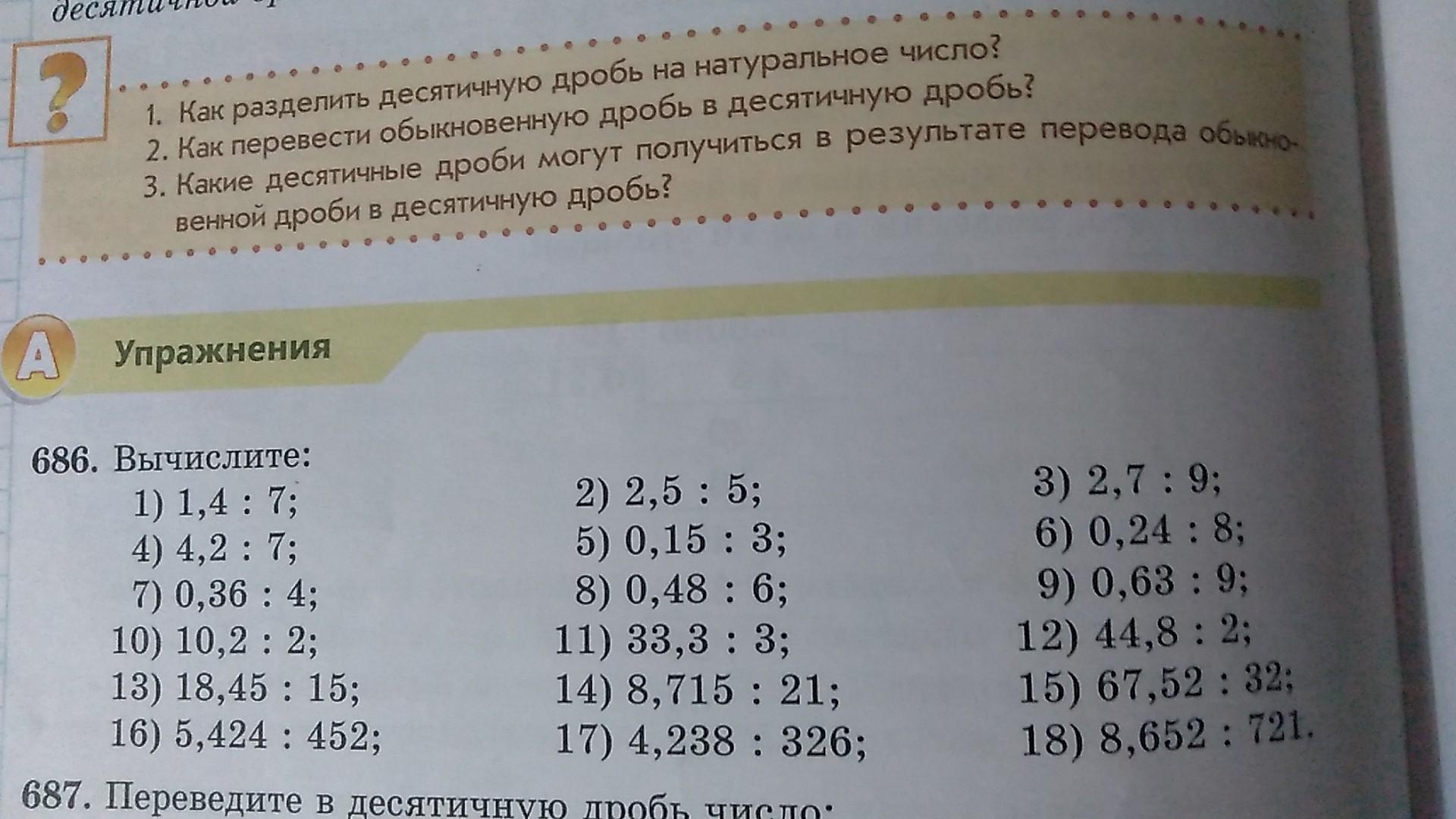 4) 4,2 : 7 = 0,6