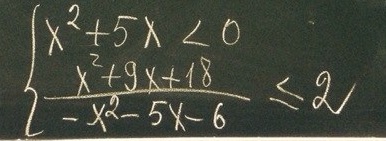 Совместное решение этих двух функций возможно на промежутке от нуля до -5 за исключением значений минус 2 и минус 3, прикоторых знаменатель дроби превращается в 0.