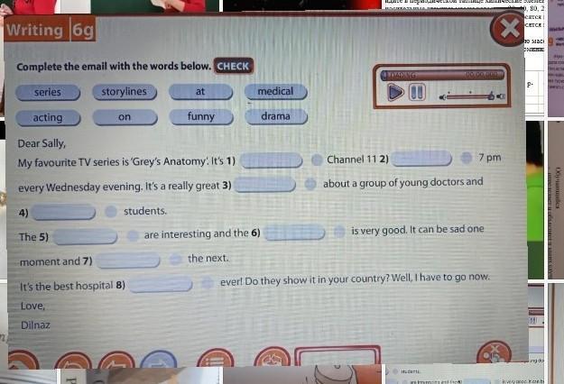 Complete the email with the words below series, storyline, at,medical, acting ,on,funny, drama my пожалуйста срочно даю 40 баллов пажеее срочно