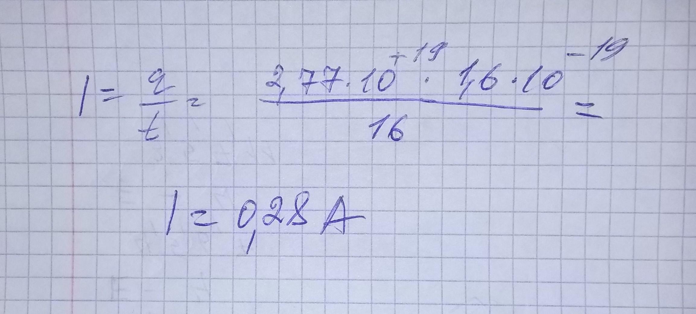 СРОЧНО! Через лампочку карманного фонарика за 16 секунд проходит 2,77 -1019 электронов. Чему равна сила