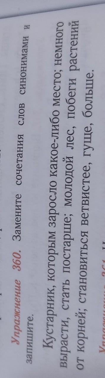 Упражнение 360. Замените сочетания слов синонимами и запишите всё на фото помогите пожалуйста!!!
