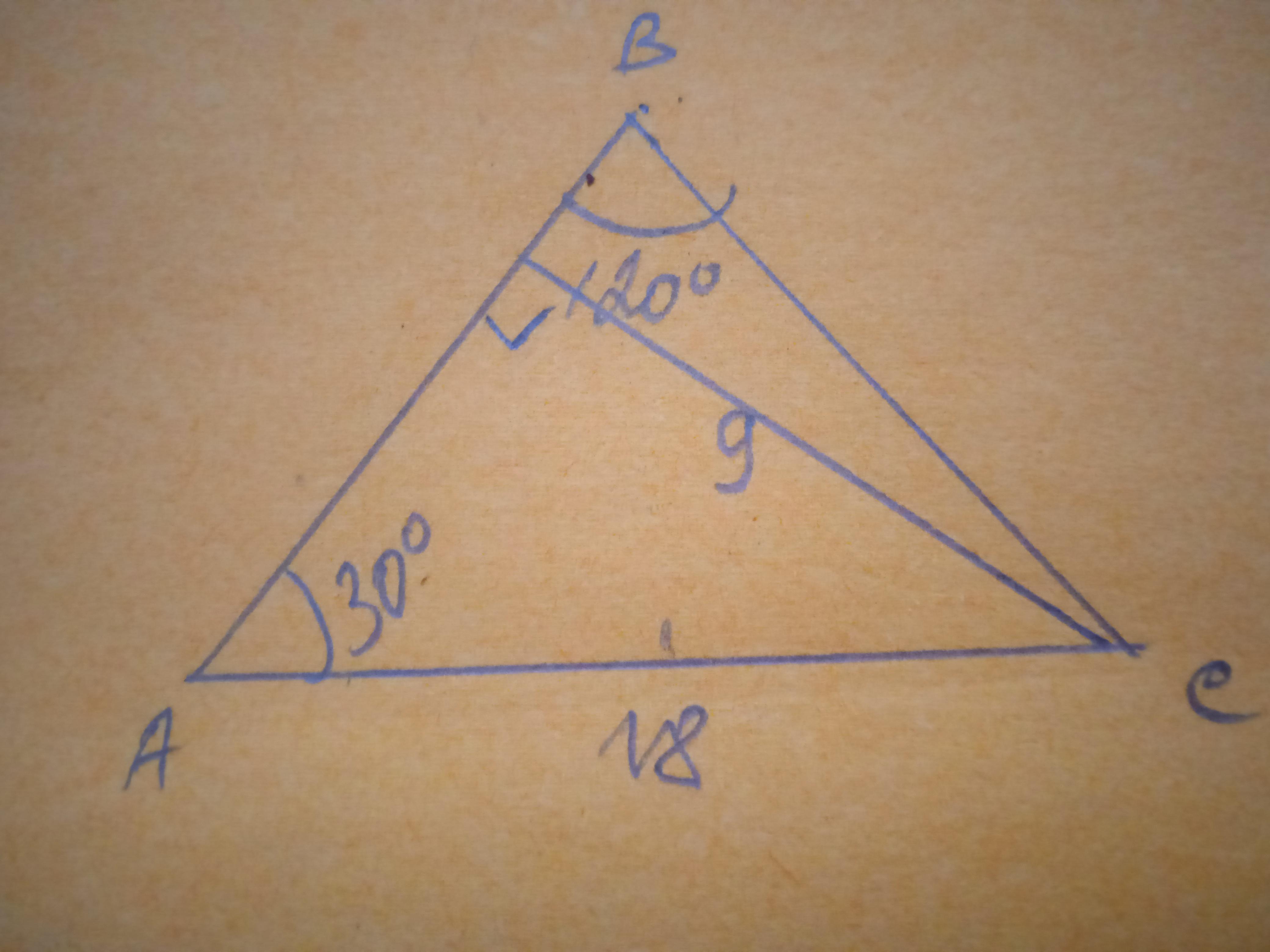 Нехай дано ΔАВС, АВ=ВС, АС=18 см, ∠В=120°. СН - висота. Знайти СН.