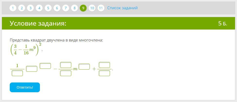(3/4 - 1/16 m⁹)² = (3/4 - m⁹/16)² =